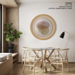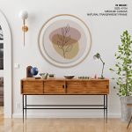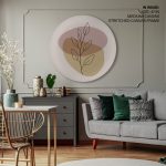 Wall Art | Bohemian line drawing leaves #228 - Circular Wooden Frame | Small to XXXL Sizes • 50+ Framing Styles • Non Toxic
