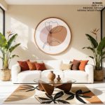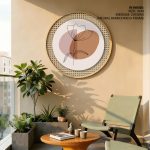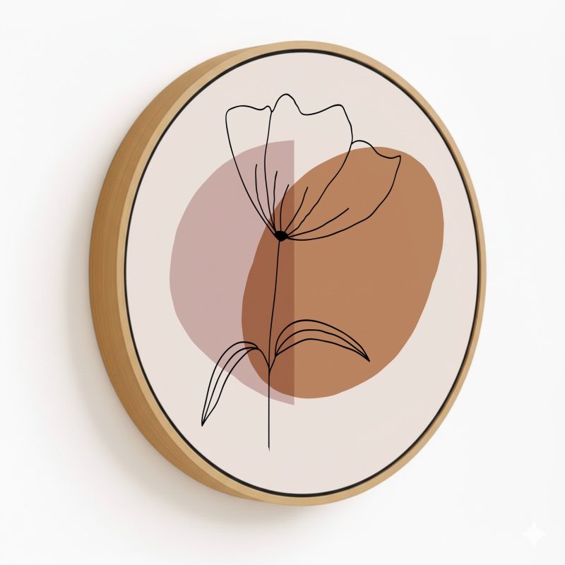 Wall Art | Bohemian line drawing leaves #230 - Circular Wooden Frame | Small to XXXL Sizes • 50+ Framing Styles • Non Toxic