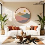 Wall Art | Bohemian mountain landscape #318 - Circular Wooden Frame | Small to XXXL Sizes • 50+ Framing Styles • Non Toxic
