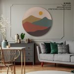 Bohemian mountain landscape #318 - Circular Wooden Frame - Wall Art - Choose Size & Frames, Non Toxic Home Decor - BestOfBharat
