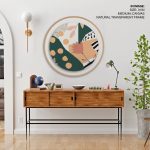 Wall Decor | Boho abstract botanical - Circular Wooden Frames | Custom Size & Frame • Ready to Hang • Made in India • Eco-Friendly