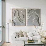 Boho Bloom: 3D Relief Wall Sculpture Art Set, Mid-Century Modern Style Home Decor, Textured Minimalist Duo - BestOfBharat