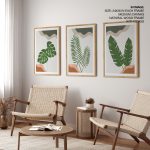 Boho monstera botanical abstract - Wall Art - Choose Size & Frames, Non Toxic Home Decor - BestOfBharat