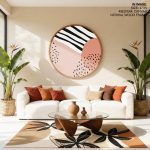 Wall Art | Boho pink abstract - Circular Wooden Frames | Small to XXXL Sizes • 50+ Framing Styles • Non Toxic