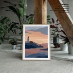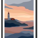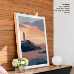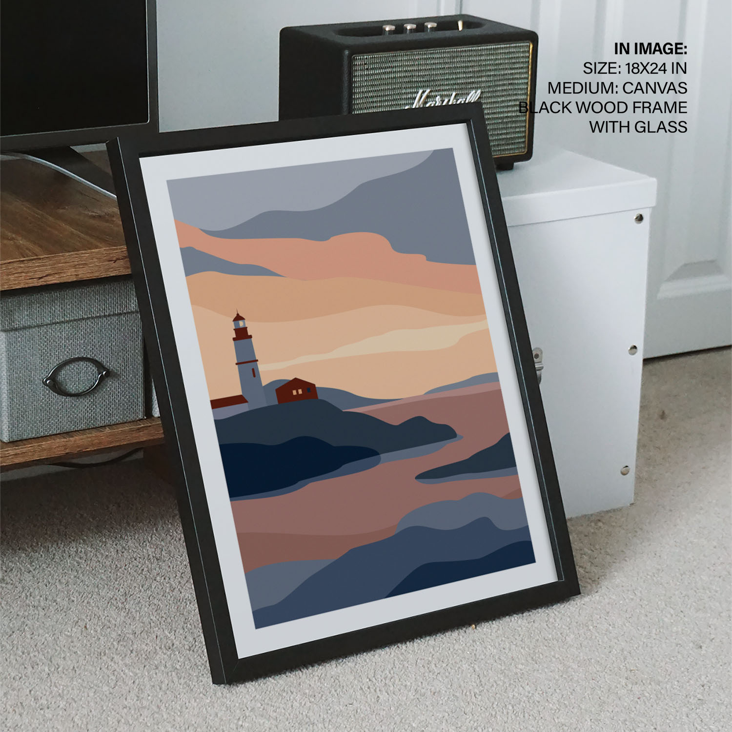 Boho sunset sea lighthouse landscape - Wall Art - Choose Size & Frames, Non Toxic Home Decor - BestOfBharat