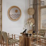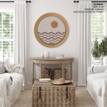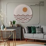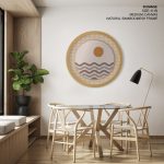 Wall Decor | Boho wavy ocean - Circular Wooden Frame | Custom Size & Frame • Ready to Hang • Made in India • Eco-Friendly