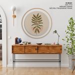 Wall Decor | Botanical bohemian abstract - Circular Wooden Frame | Custom Size & Frame • Ready to Hang • Made in India • Eco-Friendly