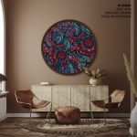 Botanical flower pattern - Circular Wooden Frame - Wall Art - Choose Size & Frames, Non Toxic Home Decor - BestOfBharat