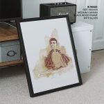 - Material: You can choose between different print mediums (Glicee paper or Canvas) and 40+ framing options that you can see on the website. Any order above 18x24 inches is processed in pinewood since synthetic wood is not able to bear its load. Wherever applicable, acrylic glass is used instead of normal glass, for its ease of handling and recyclability.