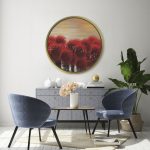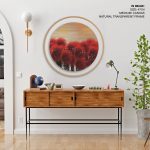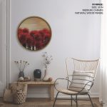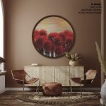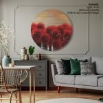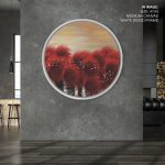 Wall Decor | Bright red trees - Circular Wooden Frame | Custom Size & Frame • Ready to Hang • Made in India • Eco-Friendly