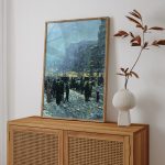 - Material: You can choose between different print mediums (Glicee paper or Canvas) and 40+ framing options that you can see on the website. Any order above 18x24 inches is processed in pinewood since synthetic wood is not able to bear its load. Wherever applicable, acrylic glass is used instead of normal glass, for its ease of handling and recyclability.