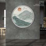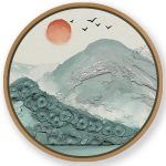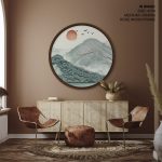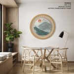Framed Art | Brushstroke mountains - Circular Wooden Frame | 50+ Frame Styles • Museum Quality • Made in India