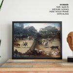 - Material: You can choose between different print mediums (Glicee paper or Canvas) and 40+ framing options that you can see on the website. Any order above 18x24 inches is processed in pinewood since synthetic wood is not able to bear its load. Wherever applicable, acrylic glass is used instead of normal glass, for its ease of handling and recyclability.