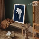 Wall Decor | Bunched flower daffodil - Indigo Pressed | Custom Size & Frame • Ready to Hang • Made in India • Eco-Friendly