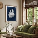 Framed Art | Cabbage rose and yellow rose - Indigo Pressed | 50+ Frame Styles • Museum Quality • Made in India