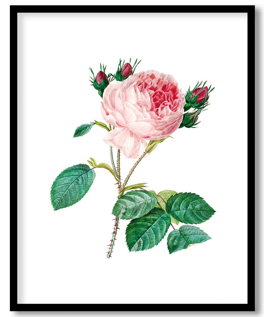 Framed Art | Cabbage rose flower botanical by Pierre Joseph Redouté #154565 | 50+ Frame Styles • Museum Quality • Made in India