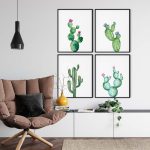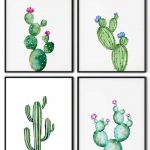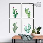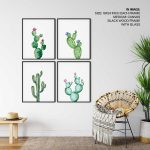 Cactus Art Set Framed Wall Art (Set of 4), Nature Art, Watercolors, Botanical - Choose Size and Frame Color