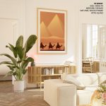 Wall Art | Camel riders silhouettes in deserted pyramids | Small to XXXL Sizes • 50+ Framing Styles • Non Toxic