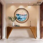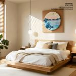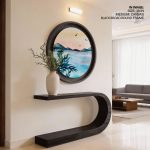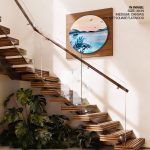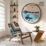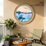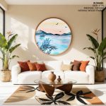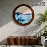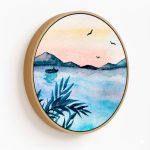 Wall Art | Cerulean watercolor landscape - Circular Wooden Frame | Small to XXXL Sizes • 50+ Framing Styles • Non Toxic