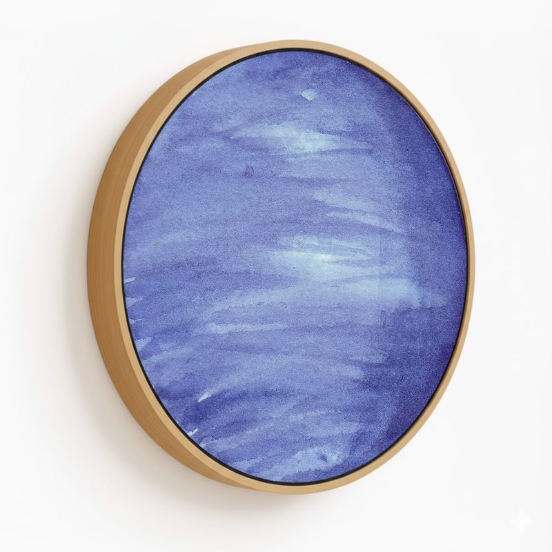 Framed Art | Cerulean watercolor neptune - Circular Wooden Frame | 50+ Frame Styles • Museum Quality • Made in India