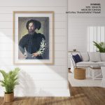 - Material: You can choose between different print mediums (Glicee paper or Canvas) and 40+ framing options that you can see on the website. Any order above 18x24 inches is processed in pinewood since synthetic wood is not able to bear its load. Wherever applicable, acrylic glass is used instead of normal glass, for its ease of handling and recyclability.