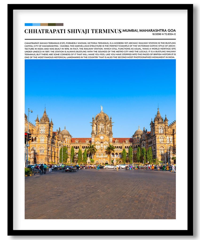 Wall Art | Chhatrapati Shivaji Terminus, India pantone poster | Small to XXXL Sizes • 50+ Framing Styles • Non Toxic