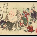 Children Blowing Up Hotei's Belly and Painting It Like Candy by Tsukioka Yoshitoshi (5/1/1882)