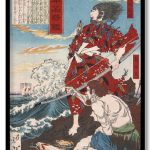 Chinzei Hachir Tametomo and Oniyashi on a Beach by Tsukioka Yoshitoshi (1879)