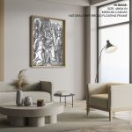 - Material: You can choose between different print mediums (Glicee paper or Canvas) and 40+ framing options that you can see on the website. Any order above 18x24 inches is processed in pinewood since synthetic wood is not able to bear its load. Wherever applicable, acrylic glass is used instead of normal glass, for its ease of handling and recyclability.