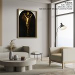 - Material: You can choose between different print mediums (Glicee paper or Canvas) and 40+ framing options that you can see on the website. Any order above 18x24 inches is processed in pinewood since synthetic wood is not able to bear its load. Wherever applicable, acrylic glass is used instead of normal glass, for its ease of handling and recyclability.