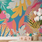 Chromatic tropical leaves and birds - Non Toxic Wall Paper Decor, Home & Office Decor - BestOfBharat