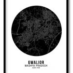 Framed Art | Circle poster black map of Gwalior | 50+ Frame Styles • Museum Quality • Made in India