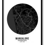 Wall Art | Circle poster black map of Mangalore | Small to XXXL Sizes • 50+ Framing Styles • Non Toxic