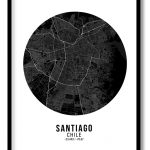 Wall Decor | Circle poster black map of Santiago | Custom Size & Frame • Ready to Hang • Made in India • Eco-Friendly