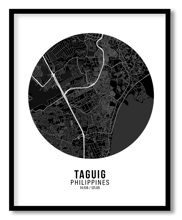 Wall Art | Circle poster black map of Taguig | Small to XXXL Sizes • 50+ Framing Styles • Non Toxic