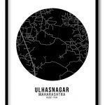 Wall Decor | Circle poster black map of Ulhasnagar | Custom Size & Frame • Ready to Hang • Made in India • Eco-Friendly
