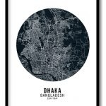 Wall Art | Circle poster blue map of Dhaka | Small to XXXL Sizes • 50+ Framing Styles • Non Toxic