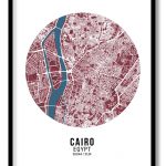 Wall Decor | Circle poster red map of Cairo | Custom Size & Frame • Ready to Hang • Made in India • Eco-Friendly