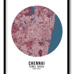 Circle poster red map of Chennai - Wall Art, Hanging Wall Decor, Home Decor - BestOfBharat