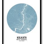 Wall Art | Circle poster sky blue map of Kolkata | Small to XXXL Sizes • 50+ Framing Styles • Non Toxic