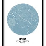 Framed Art | Circle poster sky blue map of Noida | 50+ Frame Styles • Museum Quality • Made in India