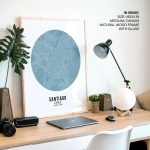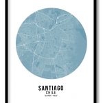 Framed Art | Circle poster sky blue map of Santiago | 50+ Frame Styles • Museum Quality • Made in India