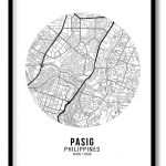 Framed Art | Circle poster white map of Pasig | 50+ Frame Styles • Museum Quality • Made in India