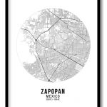 Framed Art | Circle poster white map of Zapopan | 50+ Frame Styles • Museum Quality • Made in India