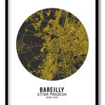 Circle poster yellow map of Bareilly - Wall Art, Hanging Wall Decor, Home Decor - BestOfBharat
