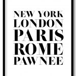 Cities + Pawnee, office wall decor, funny, funny wall art, parks and recreation, leslie know, framed wall art, tv room