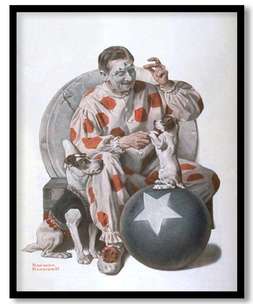 Framed Art | Clown Training Dogs by Norman Rockwell (1923) | 50+ Frame Styles • Museum Quality • Made in India