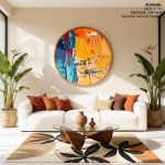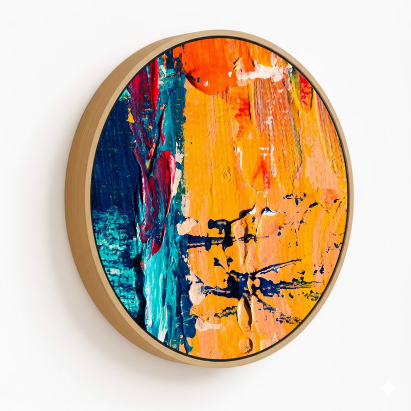 Wall Decor | Colorful abstract - Circular Wooden Frames | Custom Size & Frame • Ready to Hang • Made in India • Eco-Friendly