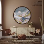 Wall Decor | Colorful mountainscape - Circular Wooden Frame | Custom Size & Frame • Ready to Hang • Made in India • Eco-Friendly