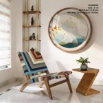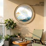 Wall Art | Contemporary golden landscape abstract #811 - Circular Wooden Frame | Small to XXXL Sizes • 50+ Framing Styles • Non Toxic